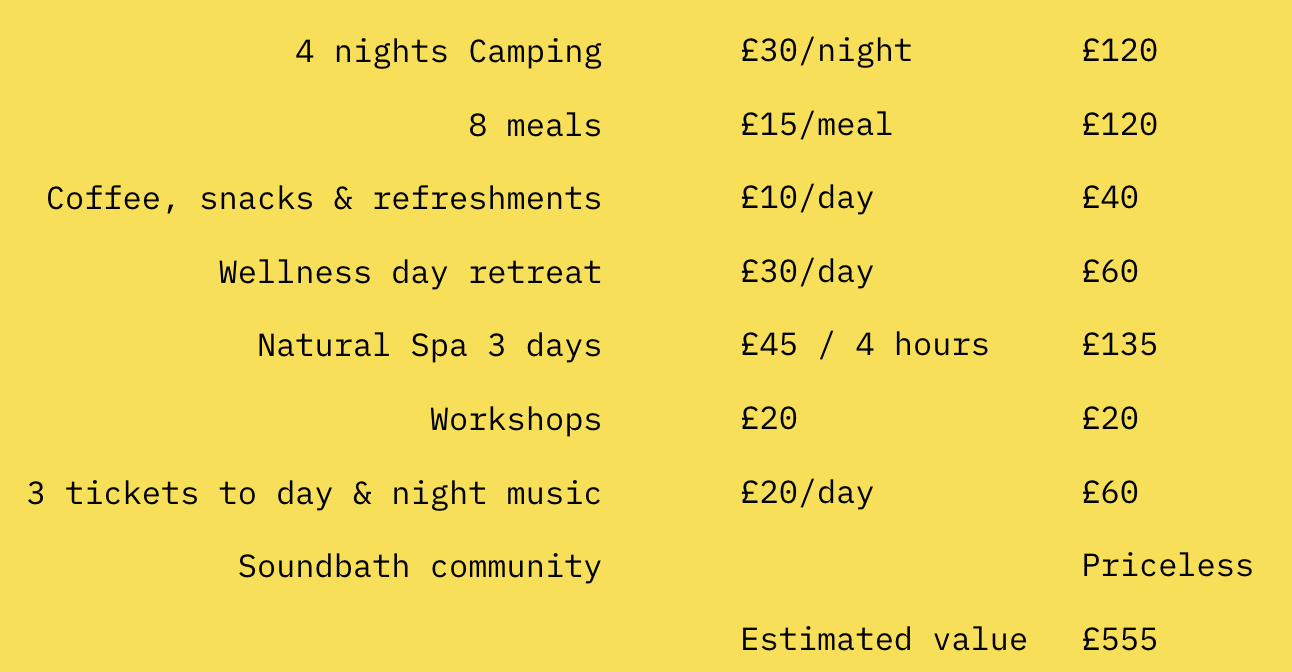 1 x Ticket to Soundbath, Thursday 16th - Monday 20th July