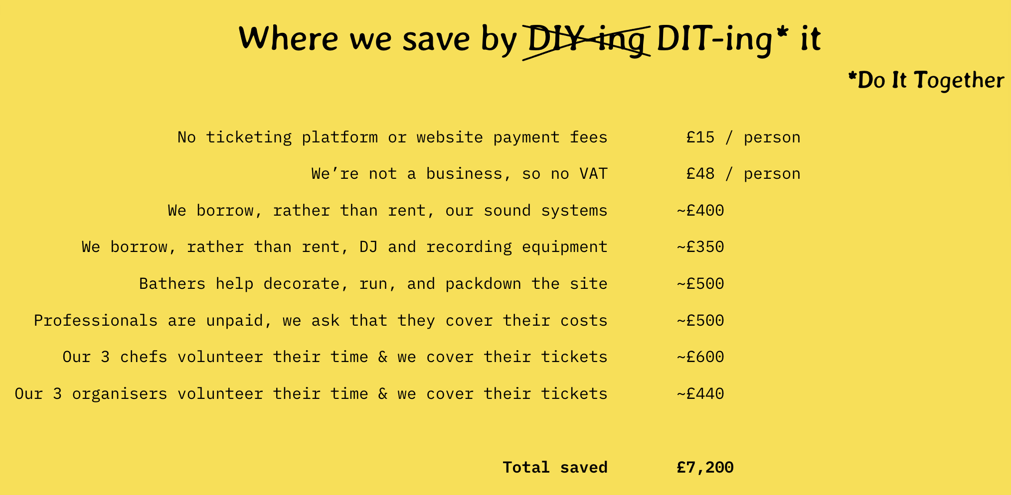 Our approach to ticket pricing is simply to cover our costs, keep things affordable, and offer the best value-for-money we can, while choosing a truly special location.